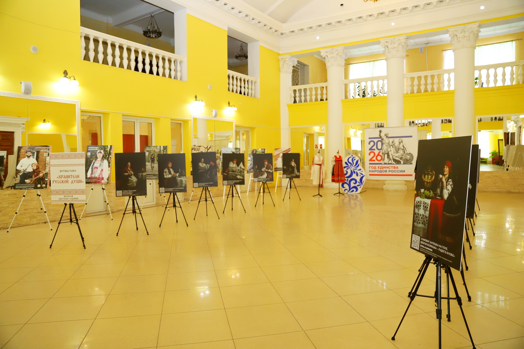 В фойе ДК посетителей встречали три выставки. Выставку книг о многообразии народов России, подготовили сотрудники районной библиотеки. Две другие выставки образовали настоящую фотогалерею. На фотоработах проекта «Этнокультурная мозаика России», запечатлены представители разных национальностей, внесших особый вклад в укрепление единства и гармонизацию межнациональных отношений в Тульской области. А в фотоработах проекта «Хранители русской души», автор которого – суворовский фотограф Анастасия Седыкина, гости праздника узнали своих земляков – работников культуры района в образах женщин и мужчин из различных уездов Тульской губернии. Также здесь можно было сфотографироваться в фотозонах, подготовленных Центром творческого развития и Суворовским краеведческим музеем.