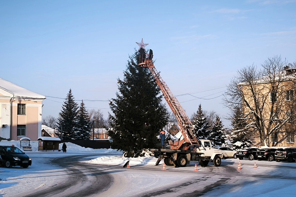 В Суворове на Площади Победы разбирают новогоднюю ель