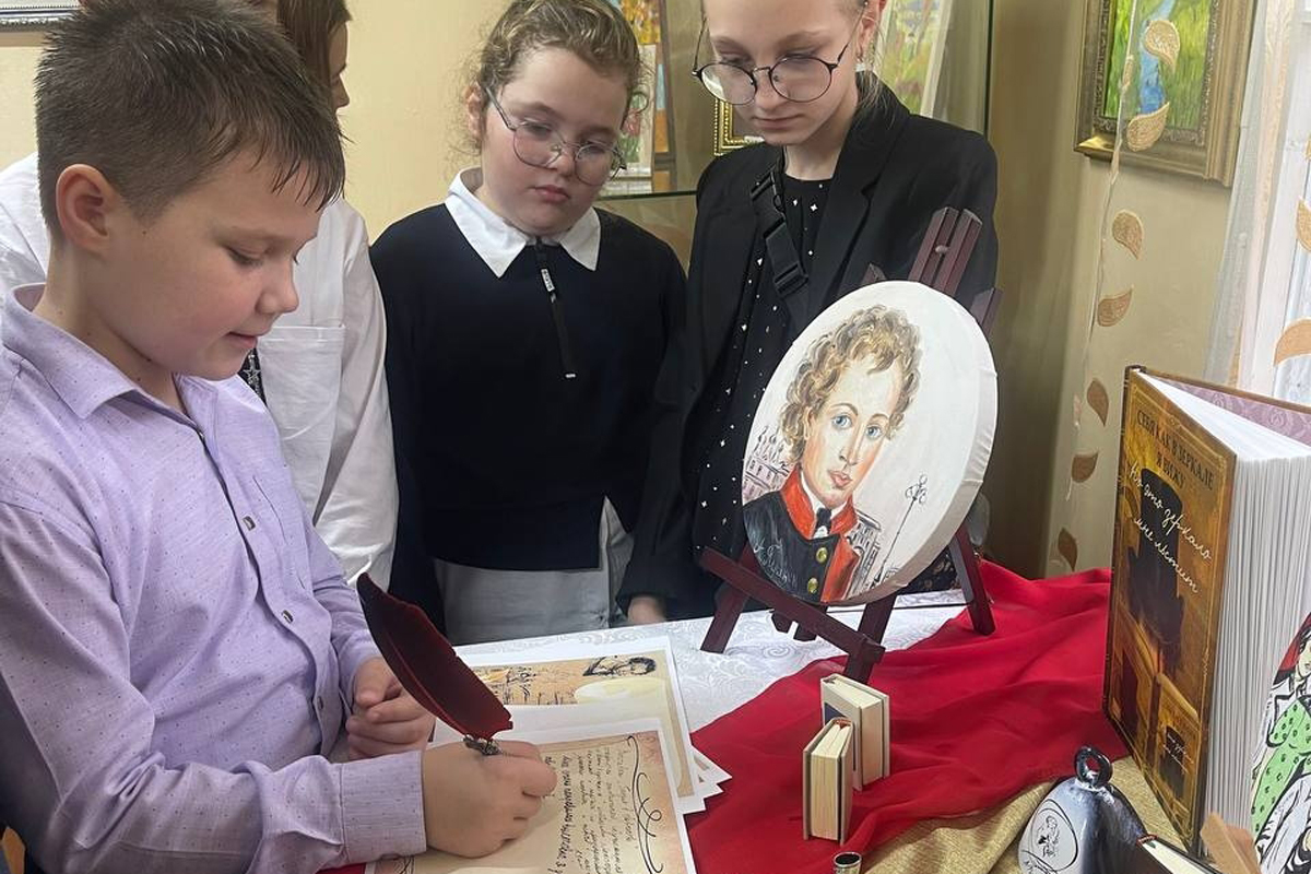 На открытии выставки педагог Золоторева Нина Николаевна провела увлекательный мастер-класс по письму пером. Участники с энтузиазмом испытали себя в этом традиционном искусстве, запечатлевая свои впечатления о выставке на бумаге.