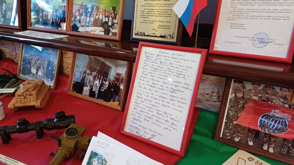 Эти личные вещи бойцов и военные трофеи свидетельствуют об их служении России, своей малой родине. Ребята, посещая музей, могут пощупать руками и сравнить, например, каску времён Великой Отечественной войны и современный шлем, прочитать письма солдат разных эпох. Одному из таких писем в экспозиции выделено особое место. В нём выпускники гимназии, а ныне – участники СВО благодарят коллектив гимназии за поддержку.